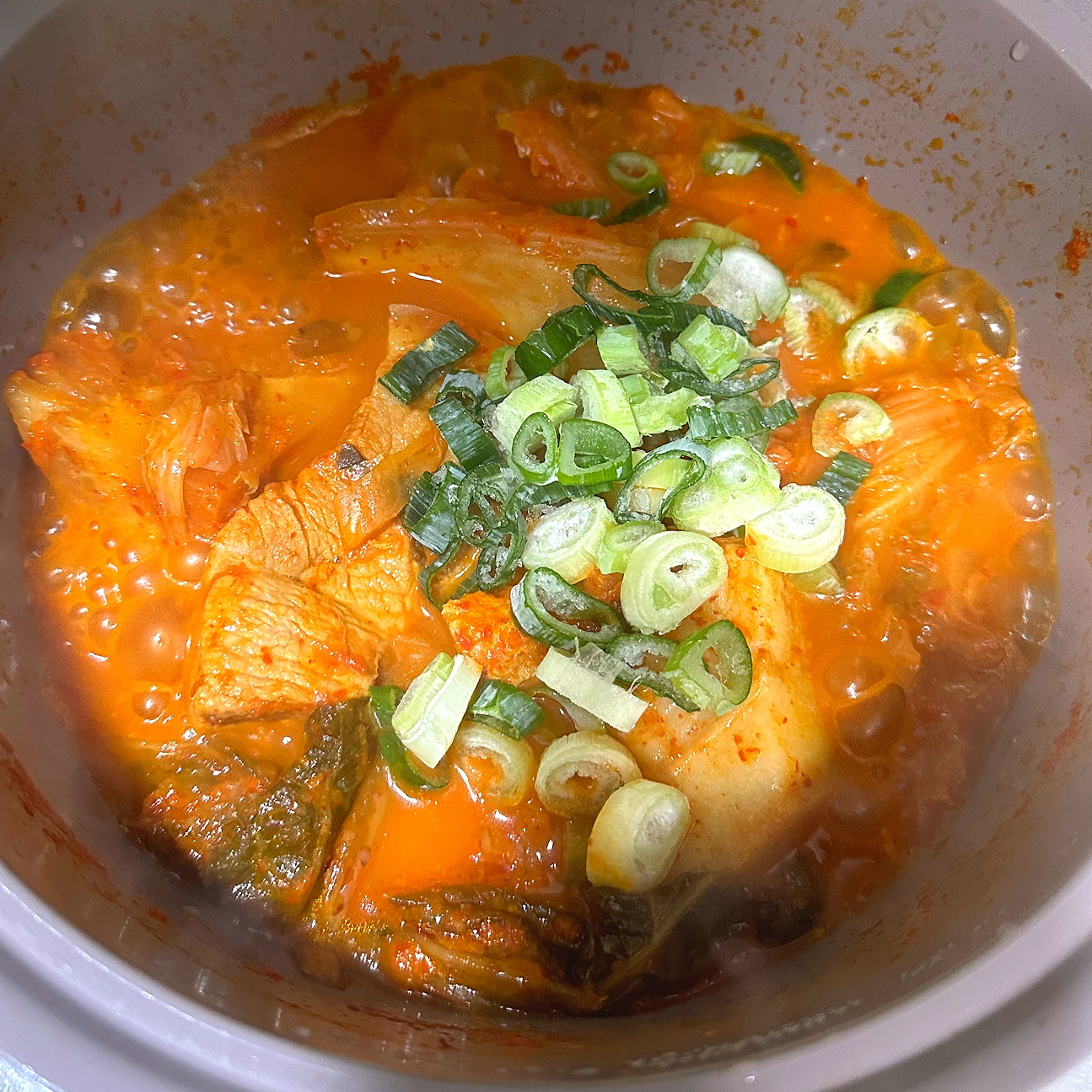 5. 마무리 간 맞추기 김치와 고기가 충분히 익었으면 간을 한 번 더 확인하고, 부족한 간은 소금이나 후추로 조절해줍니다. 대파를 마지막에 넣고 살짝 더 끓이면 대파의 향이 김치찜에 스며들어 한층 더 맛있어집니다.
