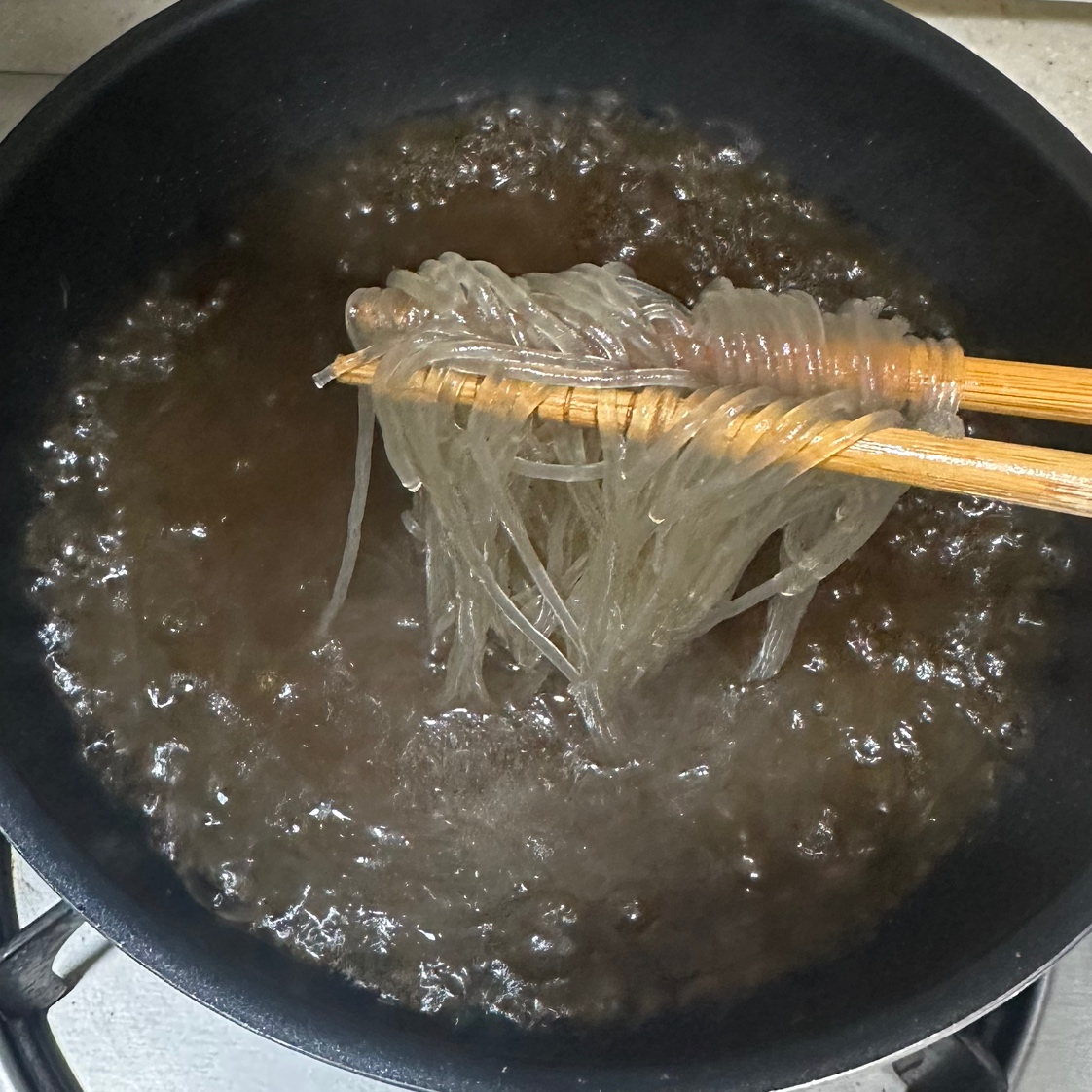 4. 삶은 당면과 볶은 채소를 섞어 마무리