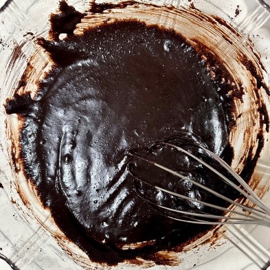 다크 초콜릿을 중탕으로 녹입니다. 녹은 초콜릿과 오일을 잘 섞일 때까지 저어줍니다. 전자레인지를 사용할 경우 30초씩 돌려가며 저어주는 것이 좋습니다. 뜨거워지지 않도록 주의하세요. 여기서 사용하는 오일은 식물성오일 중 향이 있는 올리브유를 제외하고 다 사용이 가능합니다. - 설탕과 달걀 섞기